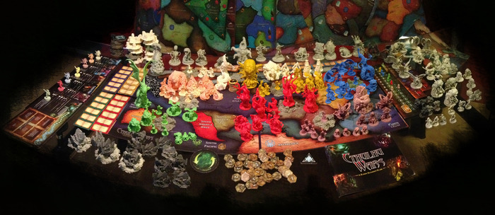 Cada copia de Cthulhu Wars incluye 72 miniaturas de alto detalle. Estas varían en una escala desde entidades de tamaño humano (Gules o Profundos) hasta piezas enormes – Más grandes que cualquier pieza de juego que hayamos visto.