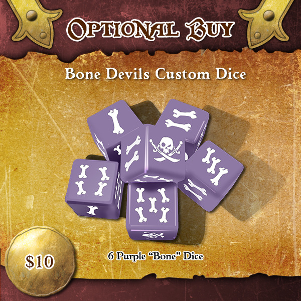 All backers now get an additional six dice for their game! These dice are in the custom "Black Bone" style seen above!