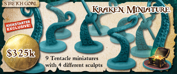 At $325,000 we let loose The Kraken! Each backer will receive Nine Sculpted Kraken Tentacles (4 sculpts!) to their game!