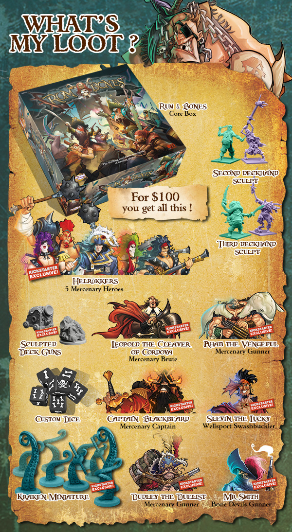 We've smashed through our first stretch goal at $75,000, backers! Meaning all boxes of Rum and Bones now include a second sculpt for their Deckhands.